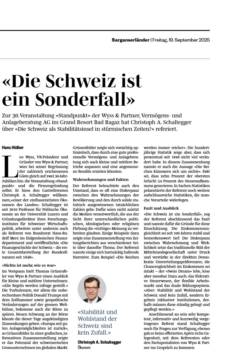 Im wunderschönen Sarganserland sind wir zuhause – einer Region, die nicht eben als Zentrum der Finanzdienstleister bekannt ist. Aus dem Kreis unserer Kunden haben wir auch schon den Vergleich gehört, als international gesuchter Vermögensverwalter hier so etwas wie das Gold im Quarz zu sein. Ein seltener Fund am Pizol, unserem Hausberg.