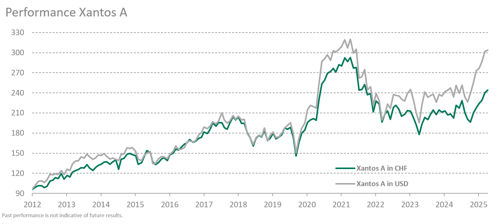 Xantos is a product of Wyss & Partner, Asset Management and Investment Counseling AG and is suitable for investors with a long-term investment horizon who wish to participate in a high-quality international equity portfolio.