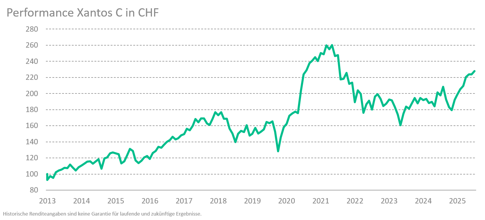 Der Fonds investiert weltweit in Aktien von kleinen und mittleren Unternehmen und kann grossen Wertschwankungen ausgesetzt sein. Xantos ist unter Umständen für Anleger nicht geeignet, die ihr Geld innerhalb eines Zeitraums von weniger als 6 Jahren aus dem Fonds zurückziehen möchten. Die Wertentwicklung der Vergangenheit ist keine Gewähr für laufende oder zukünftige Erträge. Der Fonds unterliegt dem Steuerrecht von Liechtenstein. In Abhängigkeit von Ihrem Wohnsitzland kann dies Auswirkungen darauf haben, wie Sie bzgl. Ihrer Einkünfte aus dem Fonds besteuert werden. Für weitere Details sollten Sie sich mit einem Steuerberater in Verbindung setzen. U.S. Bürger und Bürger mit Domizil USA dürfen keine Fondsanteile kaufen.
